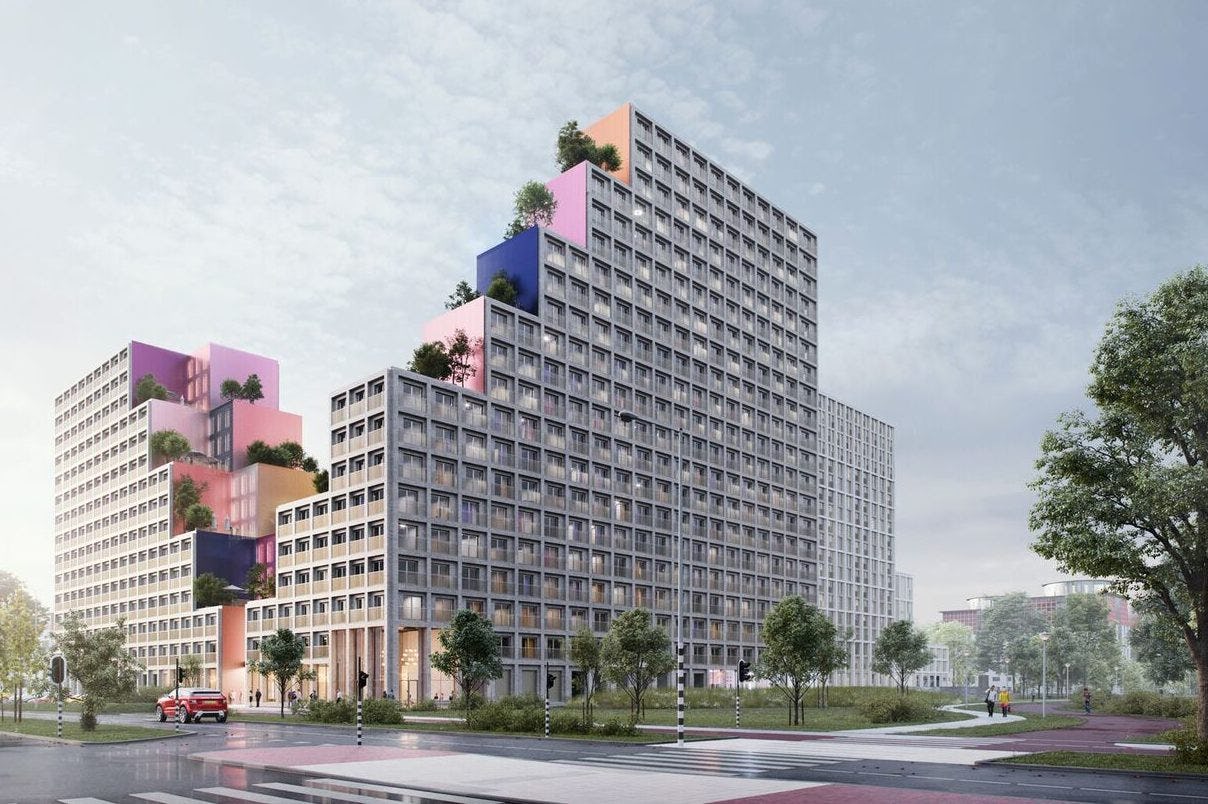 Mark Kuijpers, managing director van de Nederlandse Greystarvestiging in Den Haag, spreekt van ‘een omkering’ van het ontwerpproces. ‘Vaak zien wij dat eerst de massa en de buitenkant ontworpen worden, waarna vervolgens de woningplattegronden ingepast moeten worden. Dat leidt vaak tot onhandige plattegronden met relatief veel niet-nuttige meters waar de consument wel voor moet betalen maar eigenlijk geen woonbeleving of kwaliteit voor terugkrijgt. Wij doen dat precies omgekeerd. Wij beginnen bij de optimale woonplattegrond, de collectieve voorzieningen en de logistiek binnen de gebouwen en ontwerpen daar de gebouwen omheen. Daarom kunnen we volstaan met compactere, maar aantrekkelijke woningplattegronden.’