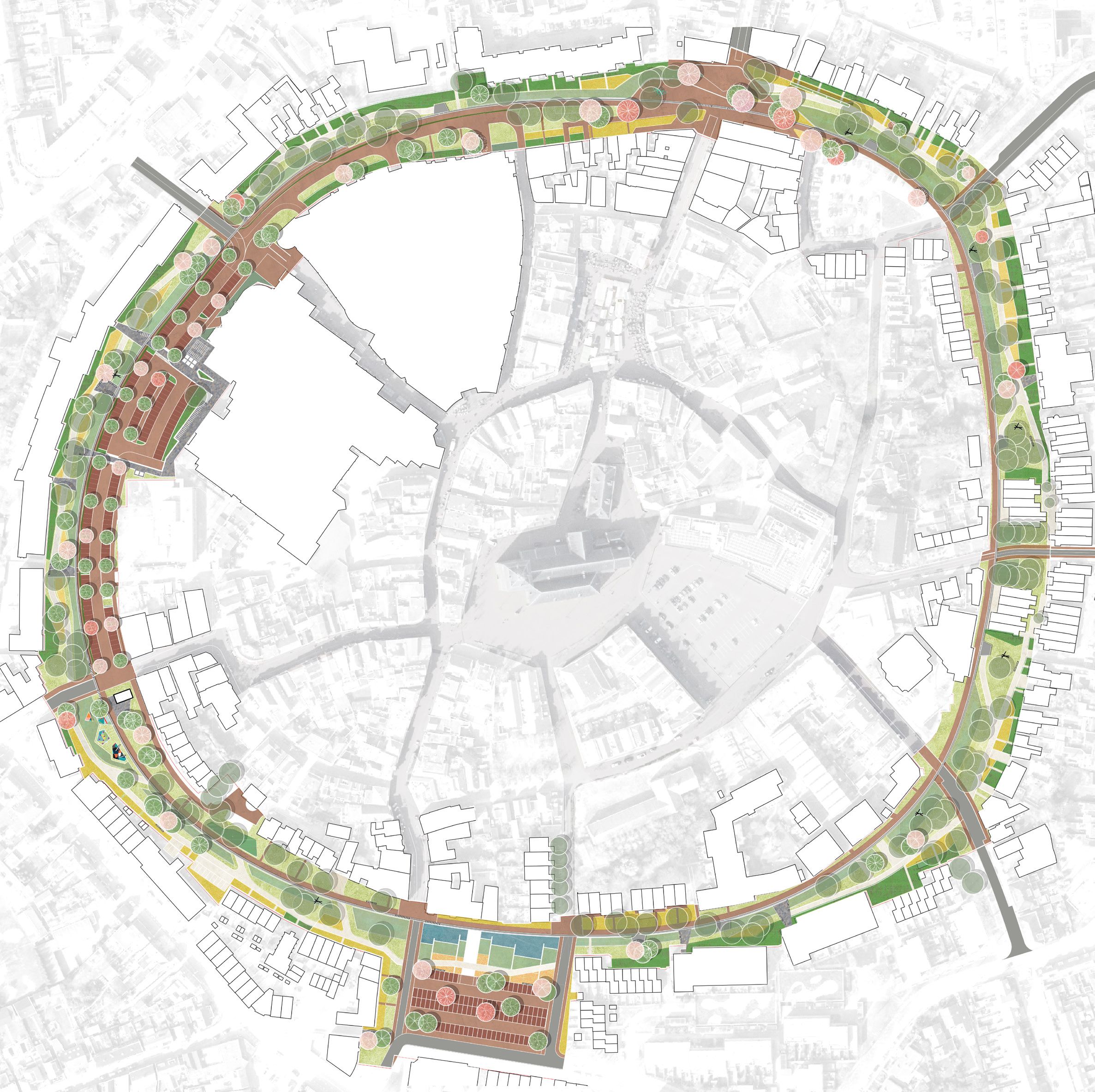 Die vergroening is met name voorzien rondom de historische binnenstad, legt Renkema uit. ‘Oldenzaal werd vanaf de 12e eeuw omzoomd door een stadswal en ringgracht. Hoewel de gracht meestal droog stond, beschermde hij Oldenzaal tegen overstroming. Oldenzaal ligt namelijk aan de voet van een stuwwal. Het is een historisch waardevol gebied. Maar de laatste decennia is de oude gracht – die officieel te boek staat als Singelpark – aan het oog onttrokken. Sterker: niemand herkent of kent het Singelpark. Overal dwars geplaatste muurtjes hebben het gebied versnipperd, men parkeert er zijn auto, retailers lossen en laden er goederen. Wij willen deze oude stadsgracht in volle glorie herstellen met mooie wandelroutes en zichtlijnen. Mensen moeten een rondje kunnen hardlopen om het Singelpark. In een deel van het park willen we net als vroeger weer overtollig regenwater afvoeren én opvangen. Het park zal dan niet alleen hittestress verminderen, maar ook historische waarden terugbrengen en de leefkwaliteit vergroten.’