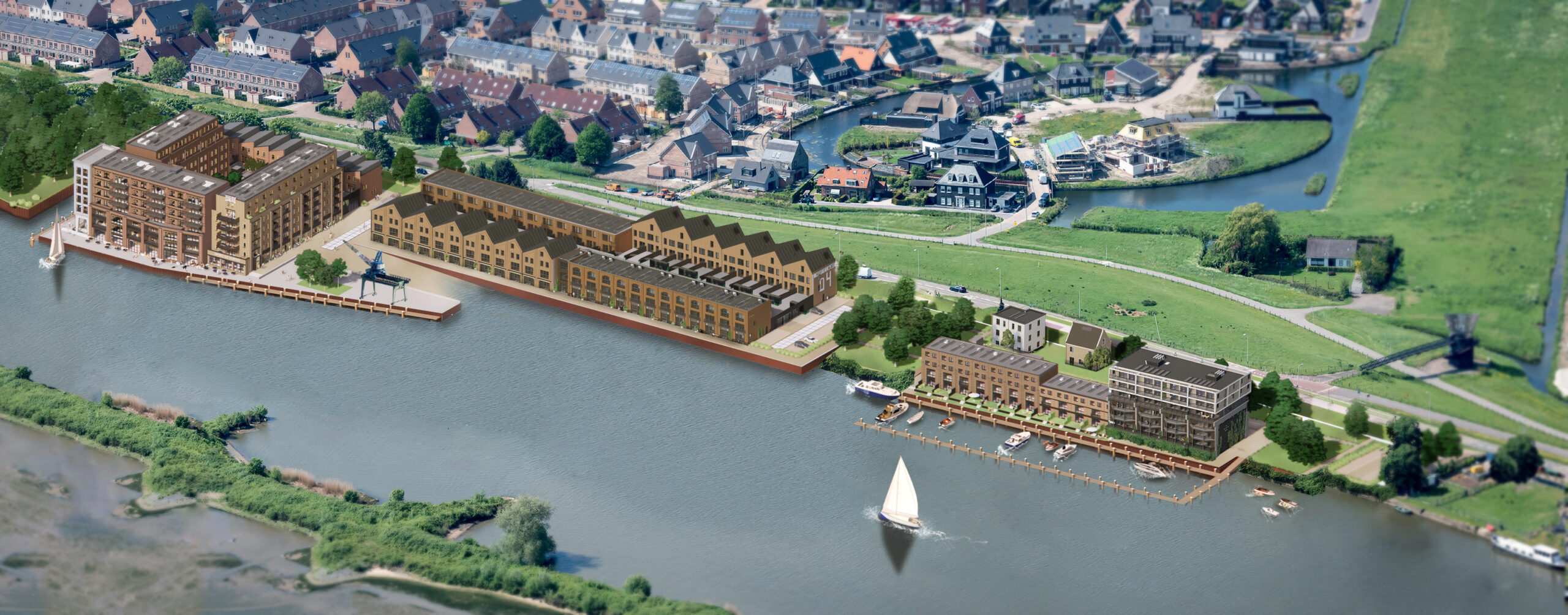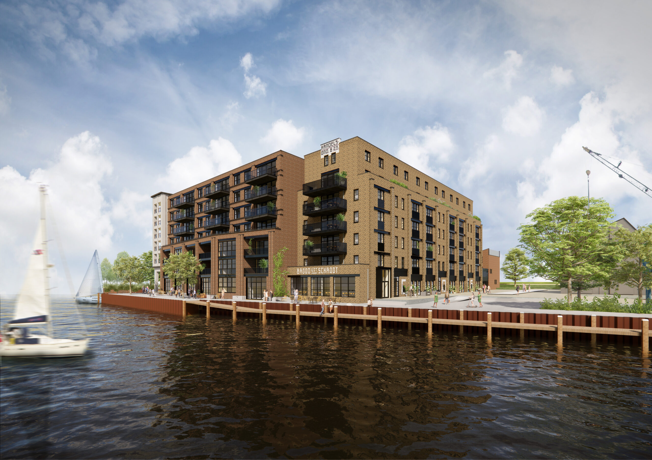 Zowel het industrieel-maritieme verleden als de natuur krijgen er een prominente rol, vervolgt ze. ‘Naast de scheepswerfarchitectuur realiseren we stoere kades en worden grote betonplaten in de straat verwerkt om het industriële karakter te benadrukken in het openbaar gebied. De scheepshelling wordt vernieuwd en de grote kraan wordt door de gemeente gerenoveerd en krijgt een prominente plek in het openbaar gebied.'