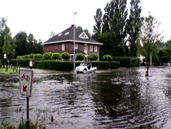 Eengezinswoningen in gebieden met overstromingsrisico zijn gemiddeld 3.000 euro minder waard dan vergelijkbare woningen. Dit concluderen economen Maarten Bosker, Harry Garretsen, Gerard Marlet en Clemens van Woerkens in hun boek 'De lage landen'.