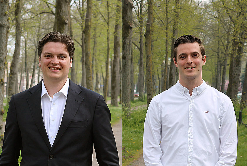 Gijs Keizer (links op foto) en Mathijs Spriensma (rechts op foto) zijn per 1 mei in dienst getreden als respectievelijk vastgoedadviseur en taxateur.