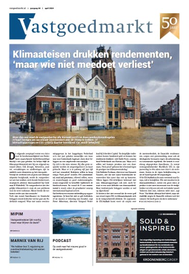 Klimaateisen drukken rendementen, 'maar wie niet meedoet verliest' | Particuliere beleggers keren zich verder af van woningmarkt | Dit is waarom grote vastgoedbeleggers zich nu achter de Wet betaalbare huur scharen | Vastgoedmalaise lijkt voorbij, maar waar blijven de deals? | 'Prijzen kantoren moeten nog 20 procent omlaag' | 'Regulering, overdrachtsbelasting en box 3 niet samen bekeken'